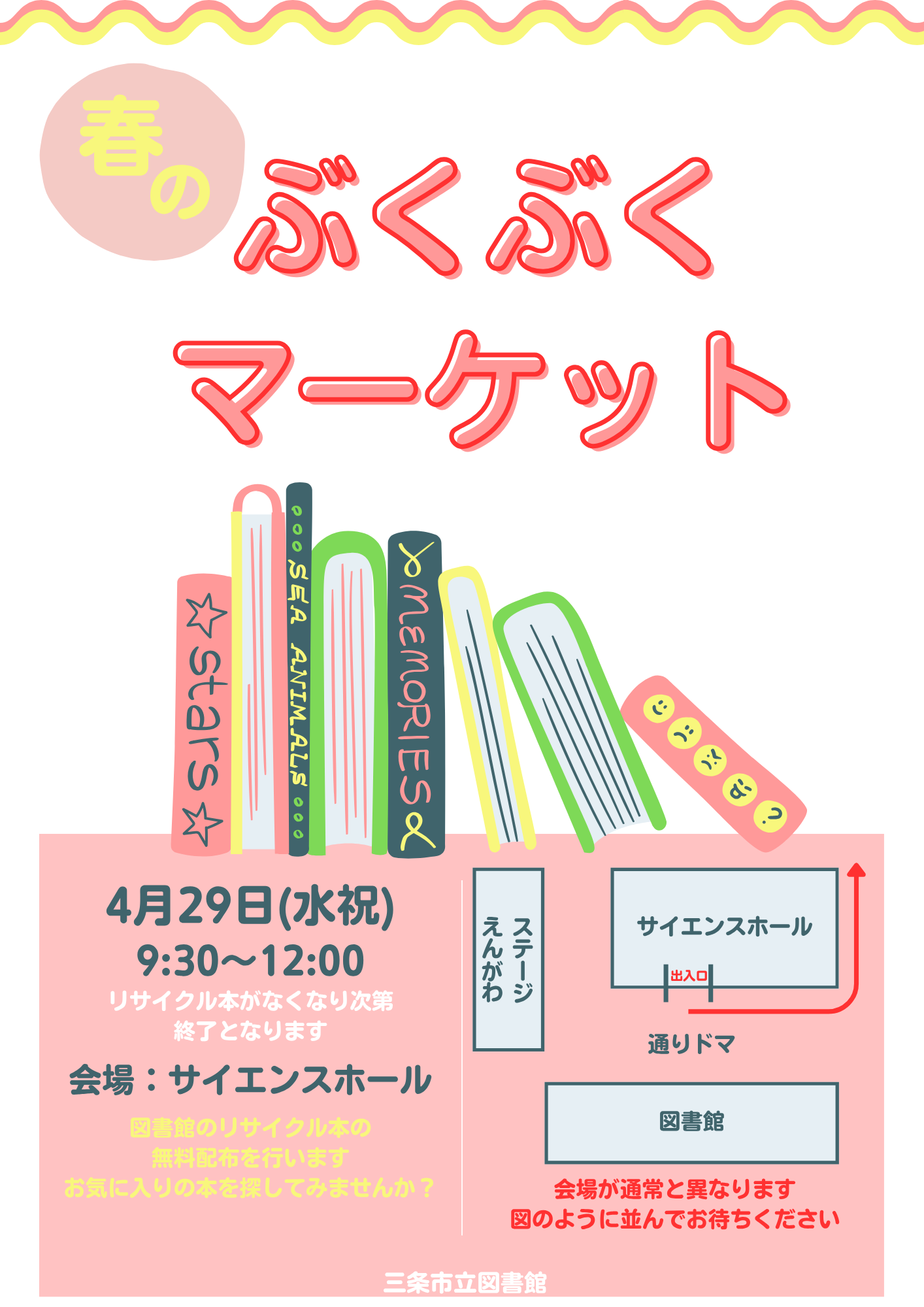 Event イベントアーカイブ 2023年05月 2023年5月4日(木・祝) 木育体験 〜こいのたきのぼり人形を作ろう〜 2023年6月17日(土) 【終了しました】プラネタリウム上映会「銀河鉄道の夜」 5 / 5«12345 イベント一覧 トップにもどる 最新のイベント 2026年04月29日 bookbook market 春のぶくぶくマーケット 図書館のリサイクル本の無料配布を行います。 お気に入りの本を探してみませんか? ※サイエンスホールでの開催となります。会場のお間違いにご注意ください。 イベントカテゴリー 図書館 科学教育センター 鍛冶ミュージアム ステージえんがわ その他 アーカイブ 2026年5月 2026年4月 2026年3月 2026年2月 2026年1月 2025年12月 2025年11月 2025年10月 2025年9月 2025年8月 2025年7月 2025年6月 2025年5月 2025年4月 2025年3月 2025年2月 2025年1月 2024年12月 2024年11月 2024年10月 2024年9月 2024年8月 2024年7月 2024年6月 2024年5月 2024年4月 2024年3月 2024年2月 2024年1月 2023年12月 2023年11月 2023年10月 2023年9月 2023年8月 2023年7月 2023年6月 2023年5月 2023年4月 2023年3月 2023年2月 2023年1月 2022年12月 2022年11月 2022年10月 2022年9月 2022年8月 2022年7月