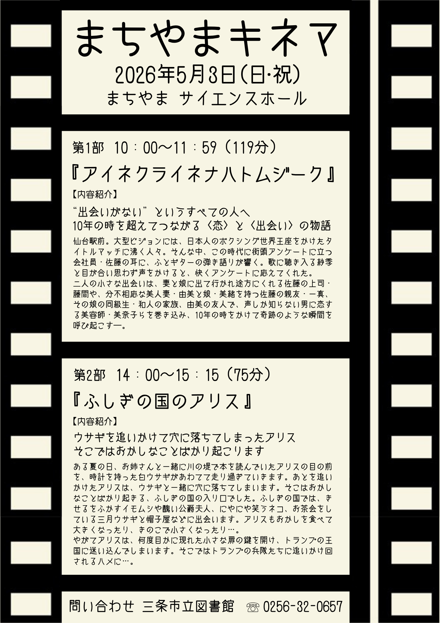 サイエンスホールの大きなスクリーンで映画を見てみませんか? 【今後の開催予定日】 毎月第1日曜日に開催します。 ※上映作品