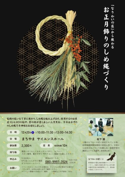 | イベント名 | 「なりわいの匠」から教わる お正月飾りのしめ縄づくり |