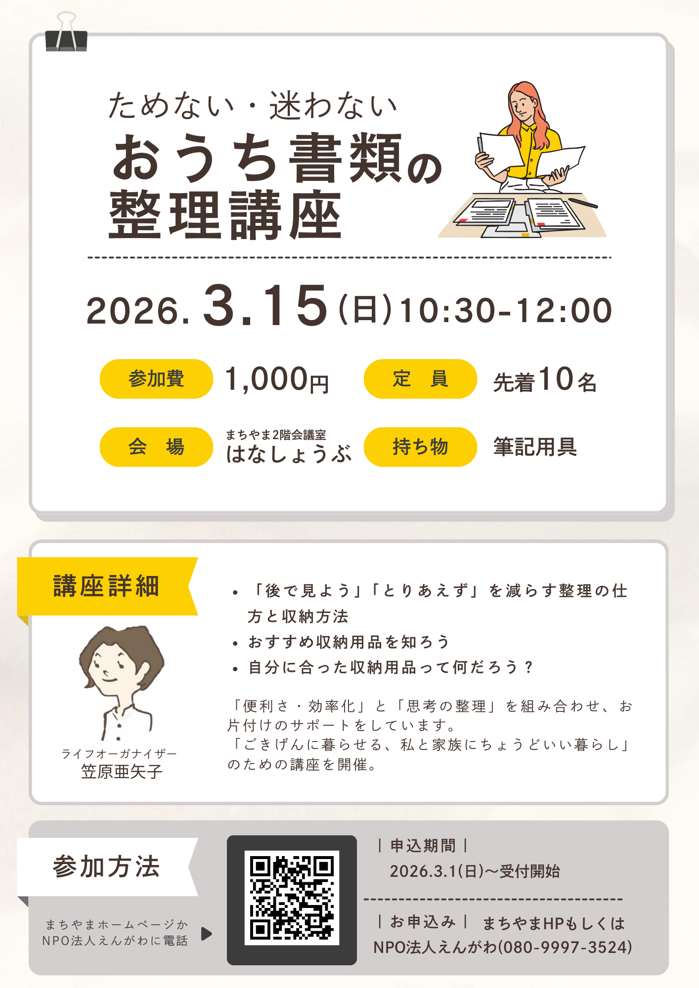 | イベント名 | ためない・迷わない おうちの書類整理講座 |