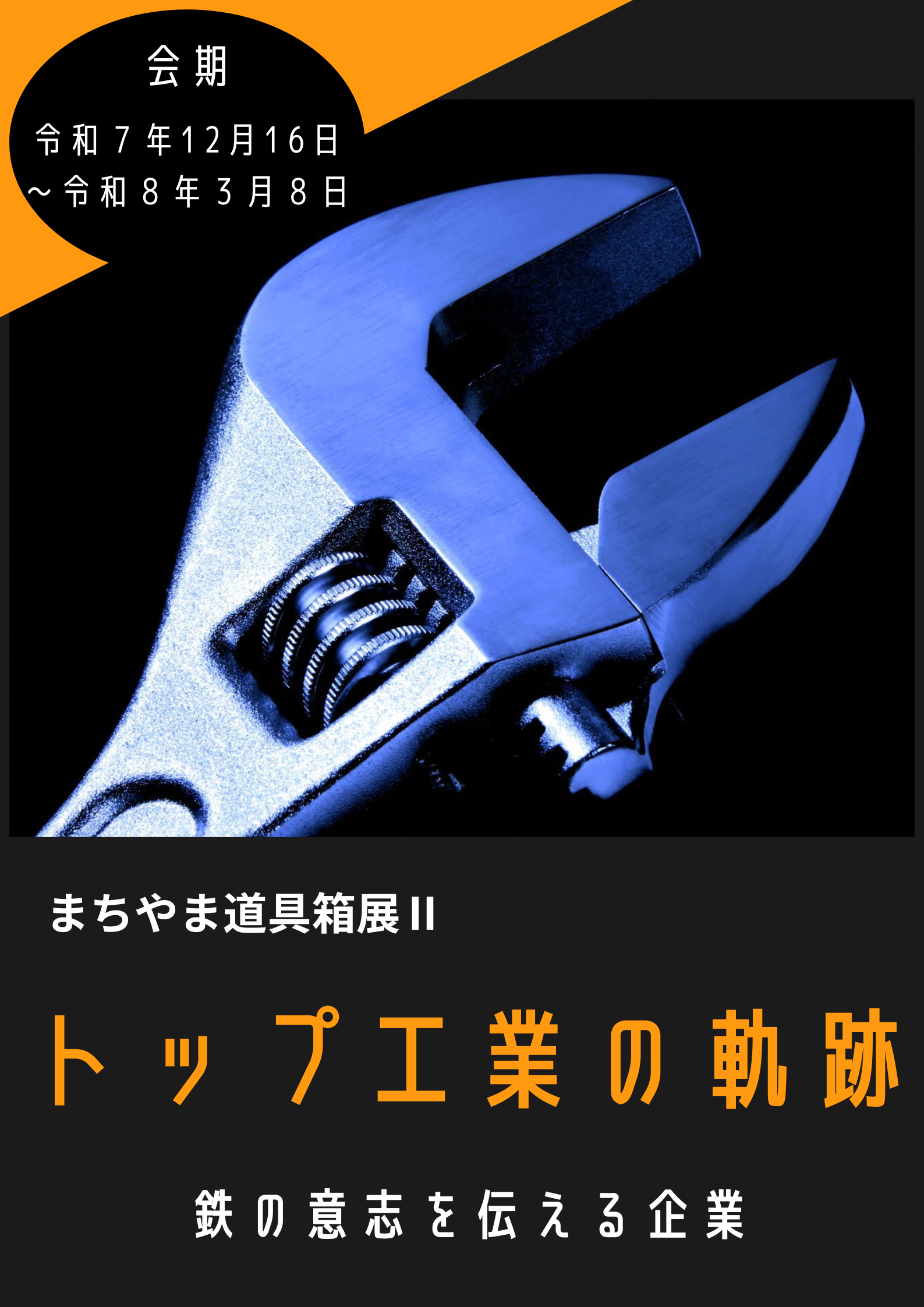 | イベント名 | まちやま道具箱展Ⅱ「トップ工業の軌跡 鉄の意志を伝える企業」 |