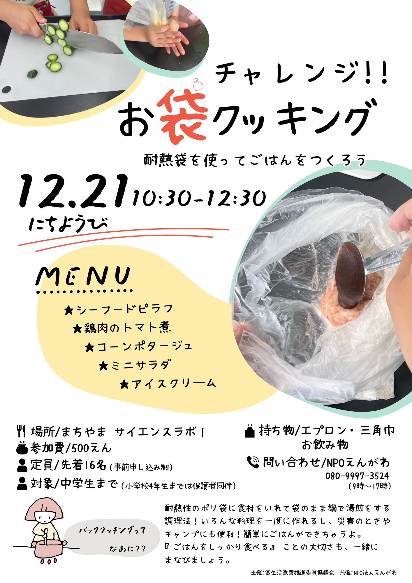 | イベント名 | チャレンジ!!お「袋」クッキング |