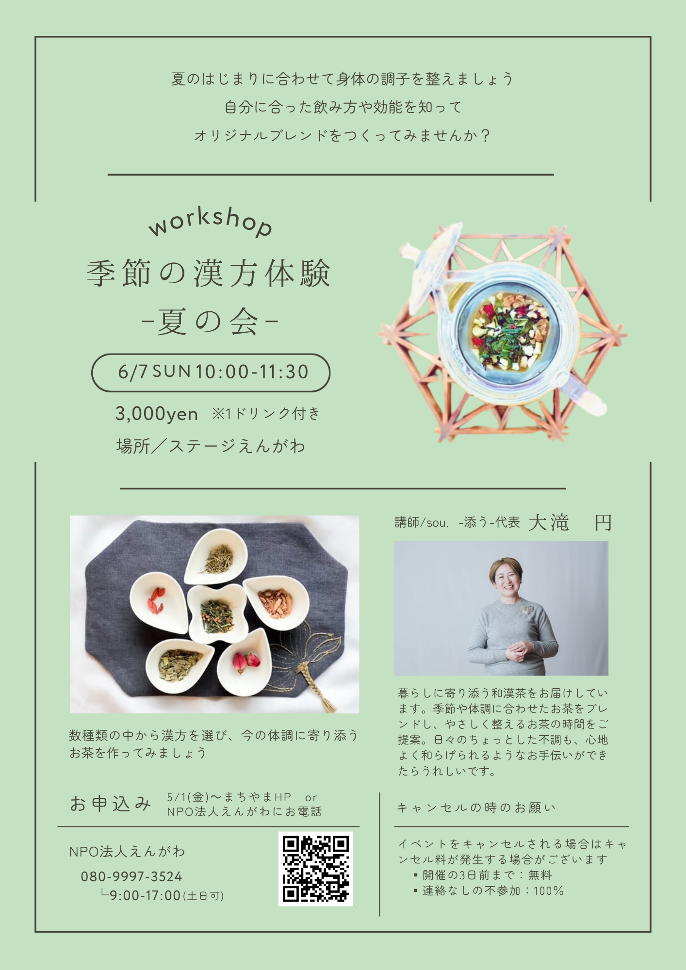 | イベント名 | 季節の漢方茶体験-夏の会- |