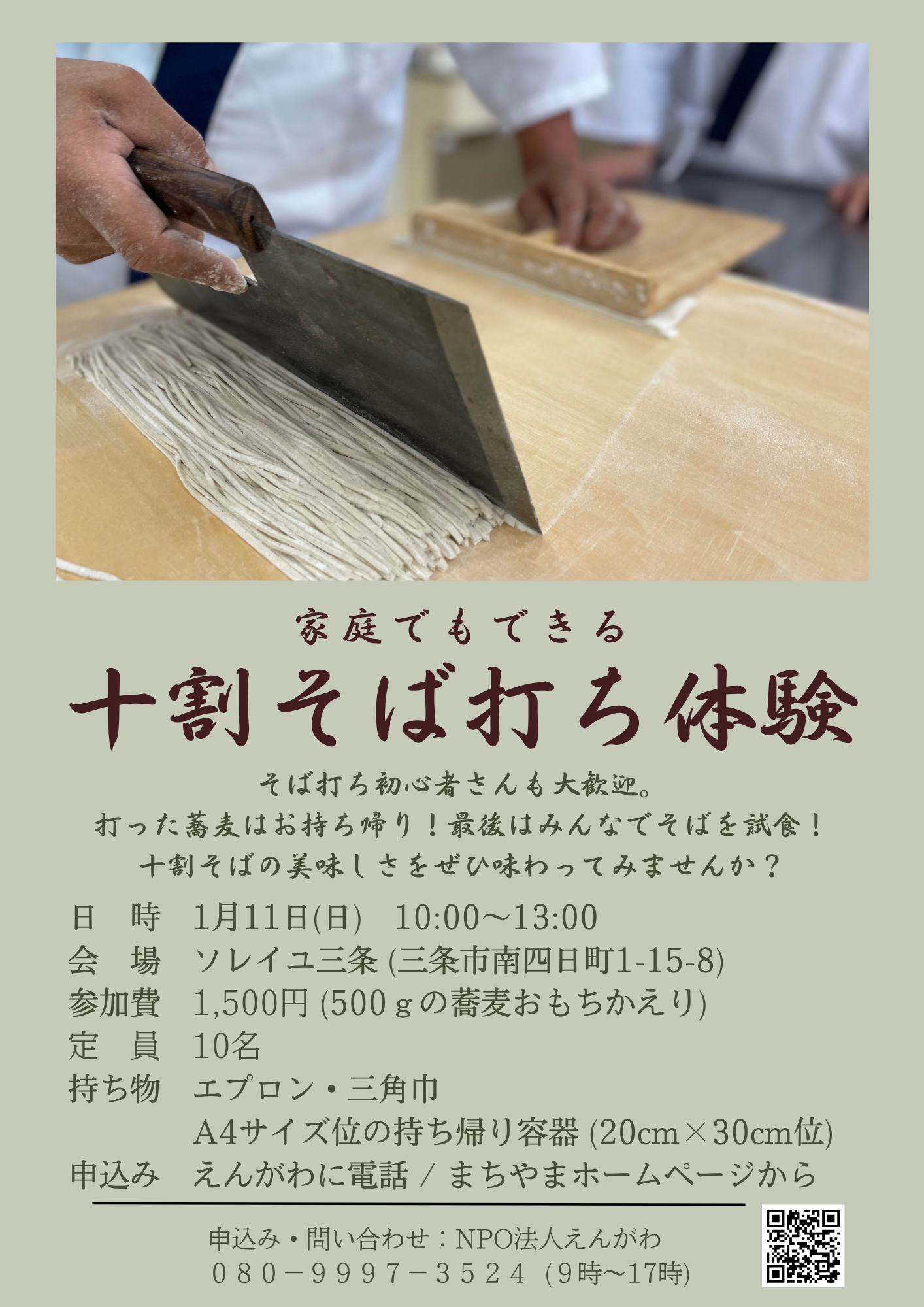 | 申込み方法 | ・左利きのかたは備考欄に左利きと記入をおねがいします(そば包丁の準備のため) (12/1~申込開始) |