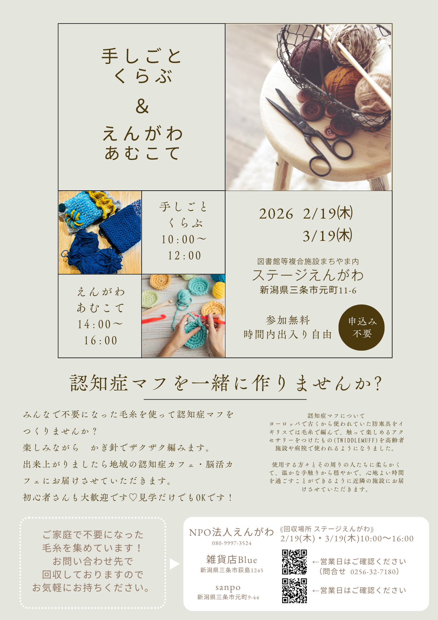 | イベント名 | 認知症マフを一緒に作りませんか? |