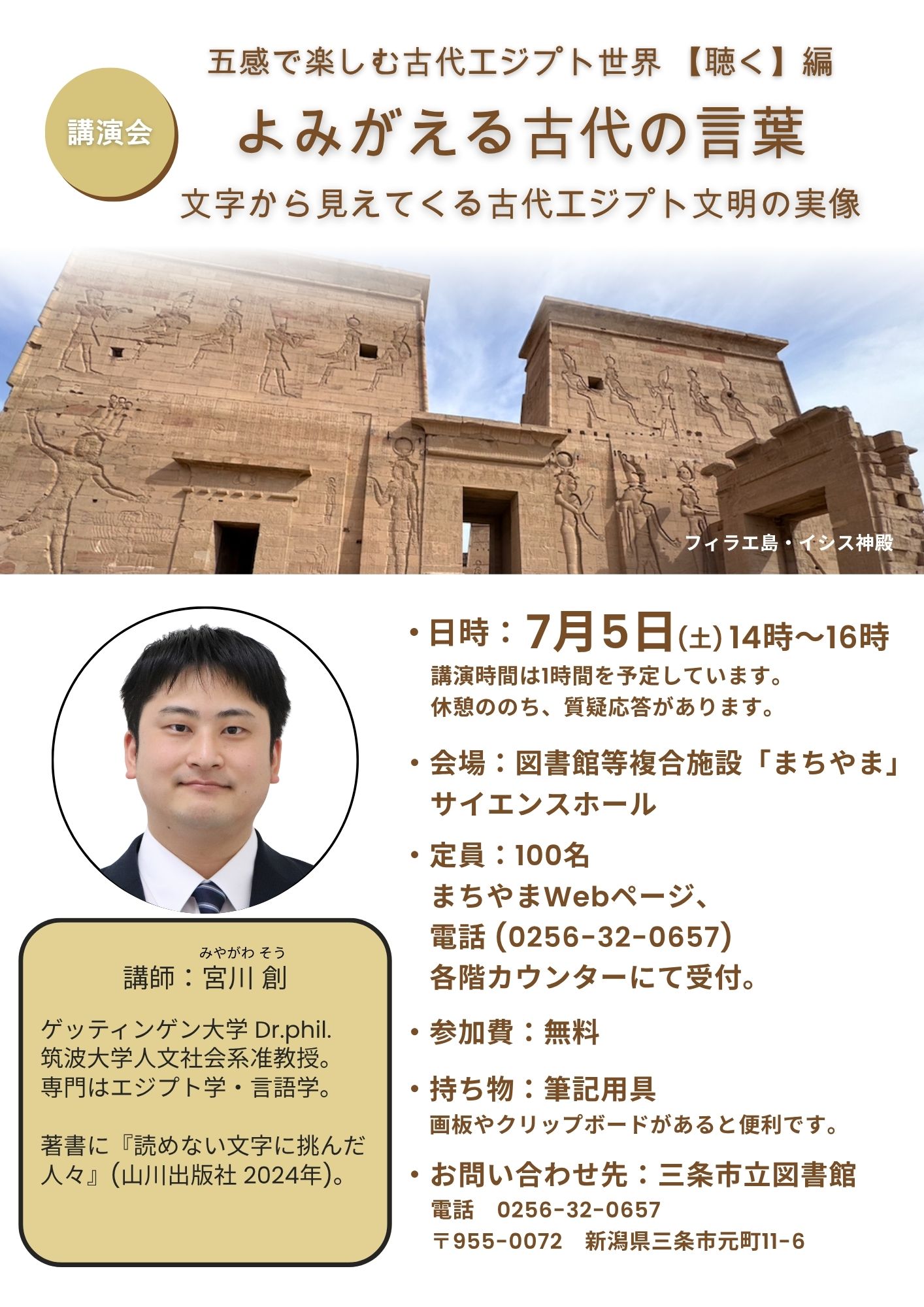 講演会「よみがえる古代の言葉」~文字から見えてくる古代エジプト文明の実像~