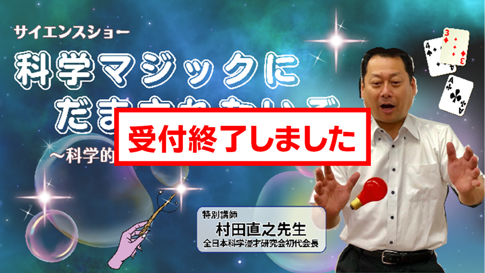 【受付終了しました】サイエンスショー「科学マジックにだまされないぞ~科学的なものの見方と考え方~」