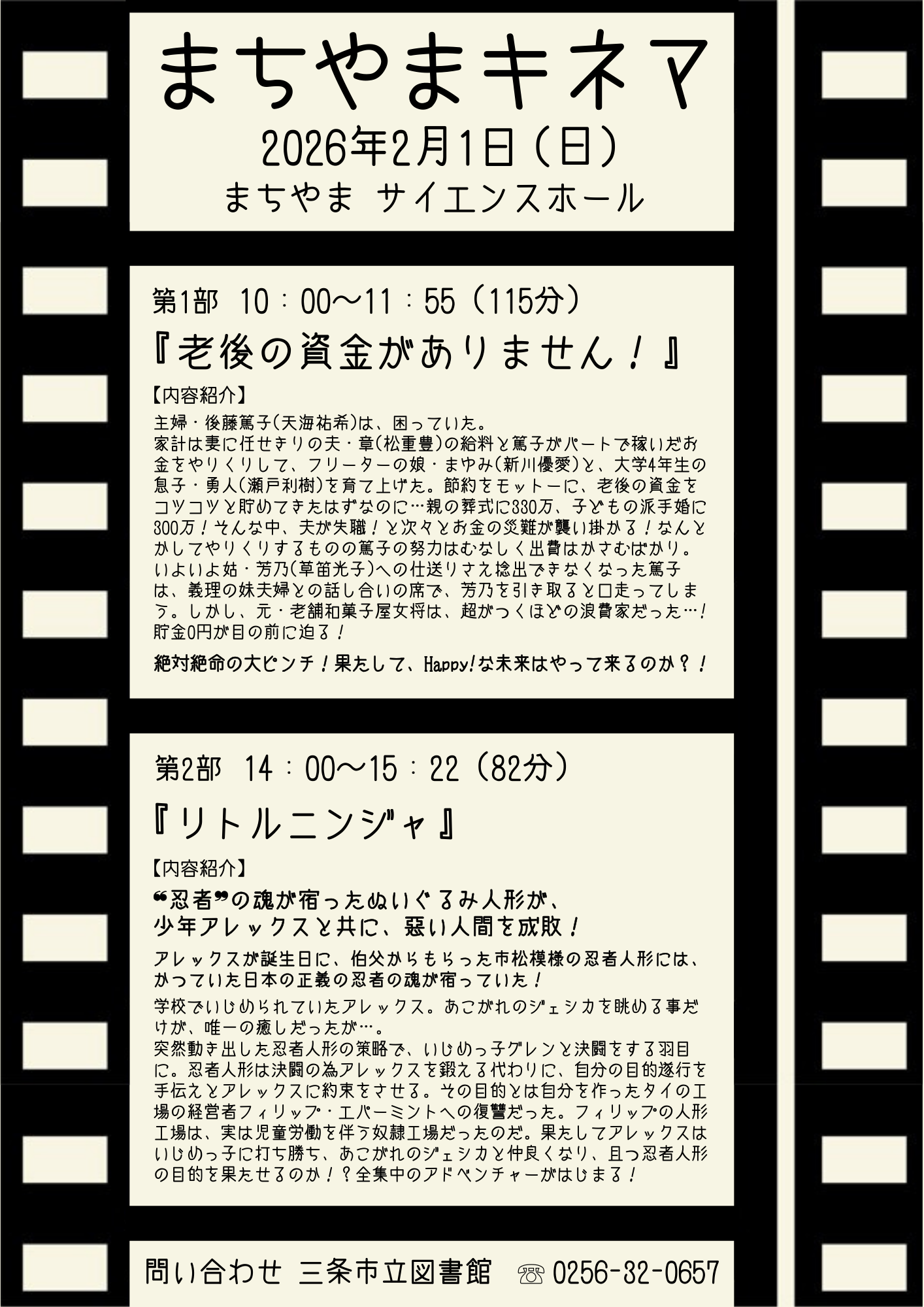 サイエンスホールの大きなスクリーンで映画を見てみませんか? 【今後の開催予定日】 毎月第1日曜日に開催します。 ※上映作品